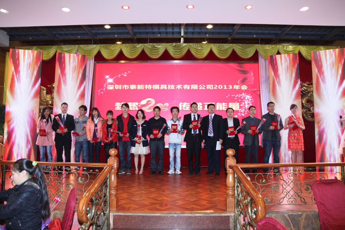 2013年元月30日,公司組織了“夢(mèng)想2013 傳遞正能量” 2012泰能特公司年會(huì) ,會(huì)上頒發(fā)了:2012年度優(yōu)秀員工、先進(jìn)集體、模具制造獎(jiǎng)。