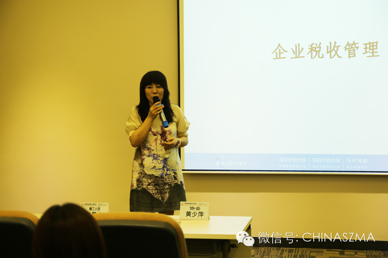活動在協(xié)會常務(wù)副會長兼秘書長黃少萍女士的主持下拉開了序幕,深圳知名財稅機構(gòu)--深圳君合信財稅服務(wù)機構(gòu)總裁胡綿鵬先生就企業(yè)日常管理中遇到的企業(yè)稅務(wù)管理的意義、如何合理節(jié)稅、如何降低稅收實體成本等問題進(jìn)行了深入淺出的講解,參會企業(yè)領(lǐng)導(dǎo)踴躍發(fā)言,提出了不少企業(yè)日常管理中遇到的稅收問題。
