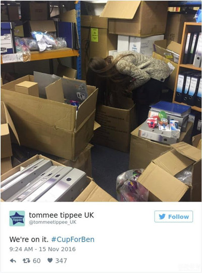 這場愛心接力很快引起了水杯生產(chǎn)商Tommee Tippee的注意。Tommee Tippee在推特上回應(yīng)說:“我們已經(jīng)組織了一隊人幫忙尋找本的同款杯子?!彼查g感覺找到了一個和泰能特模具一樣有愛心的企業(yè),員工在倉庫尋找杯子,一番波折后,工作人員終于在中國的工廠里找到了生產(chǎn)這款杯子的模具!這款杯子是20年前的產(chǎn)品,但為了本,他們決定給他單獨生產(chǎn)500個杯子。Tommee Tippee表示:“這些杯子足夠本用一輩子,家人不用再擔心找不到杯子了?!?br />