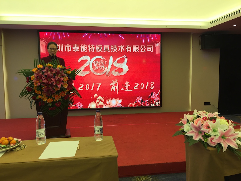 2018年元月27日深圳市泰能特模具技術有限公司“感恩2017前進2018”迎新年會在石巖中濠國際酒店隆重舉行。公司董事長及總經(jīng)理分別在年會上作了新年致辭和“2017精簡保實力,2018穩(wěn)步再前進”的新年工作報告。報告中回顧了公司2017年存在的一些問題和取得的成績及2018年的發(fā)展規(guī)劃。